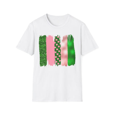 Pink & Green Brushstroke Sorority-Inspired T-Shirt – Glitter, Glam, & Greek Pride