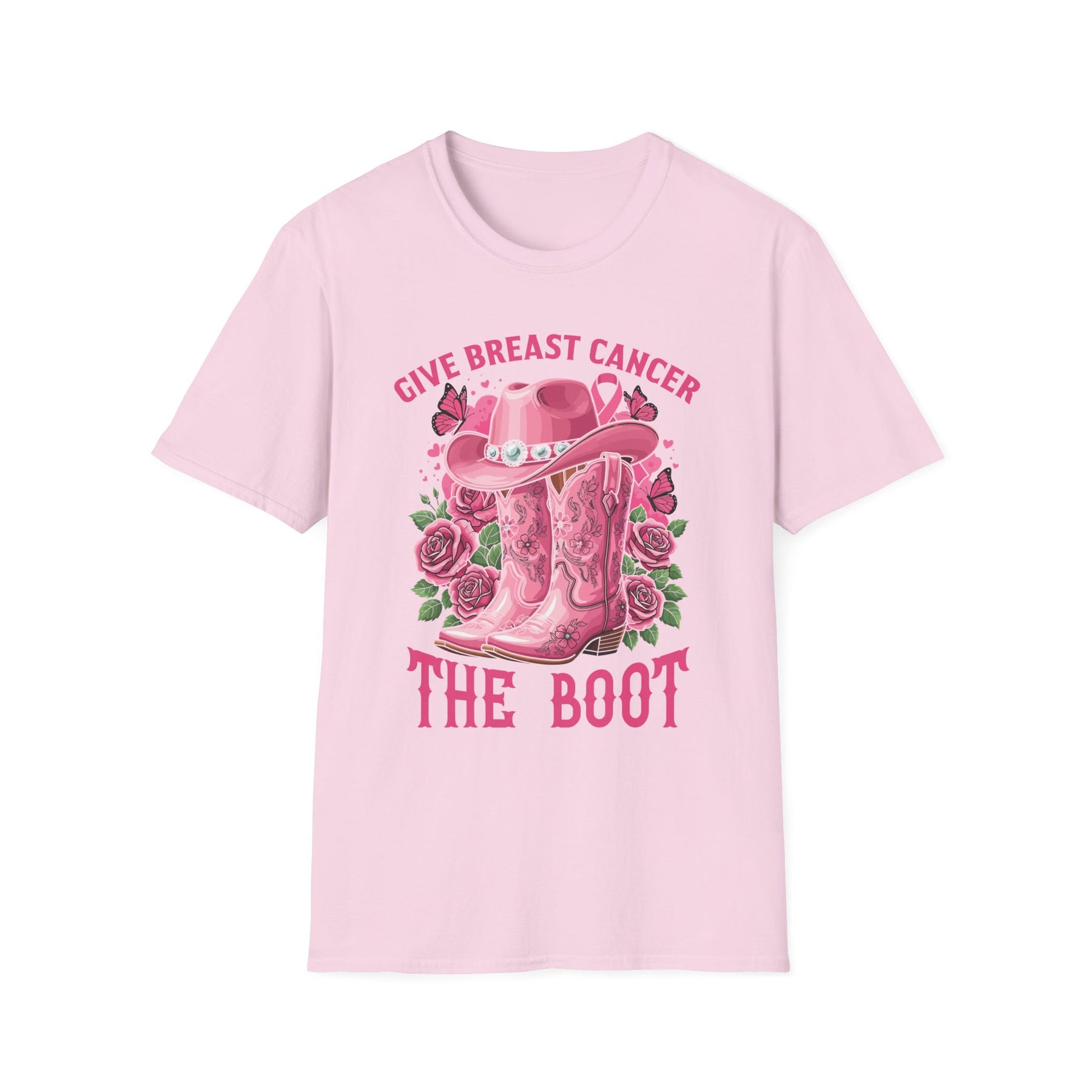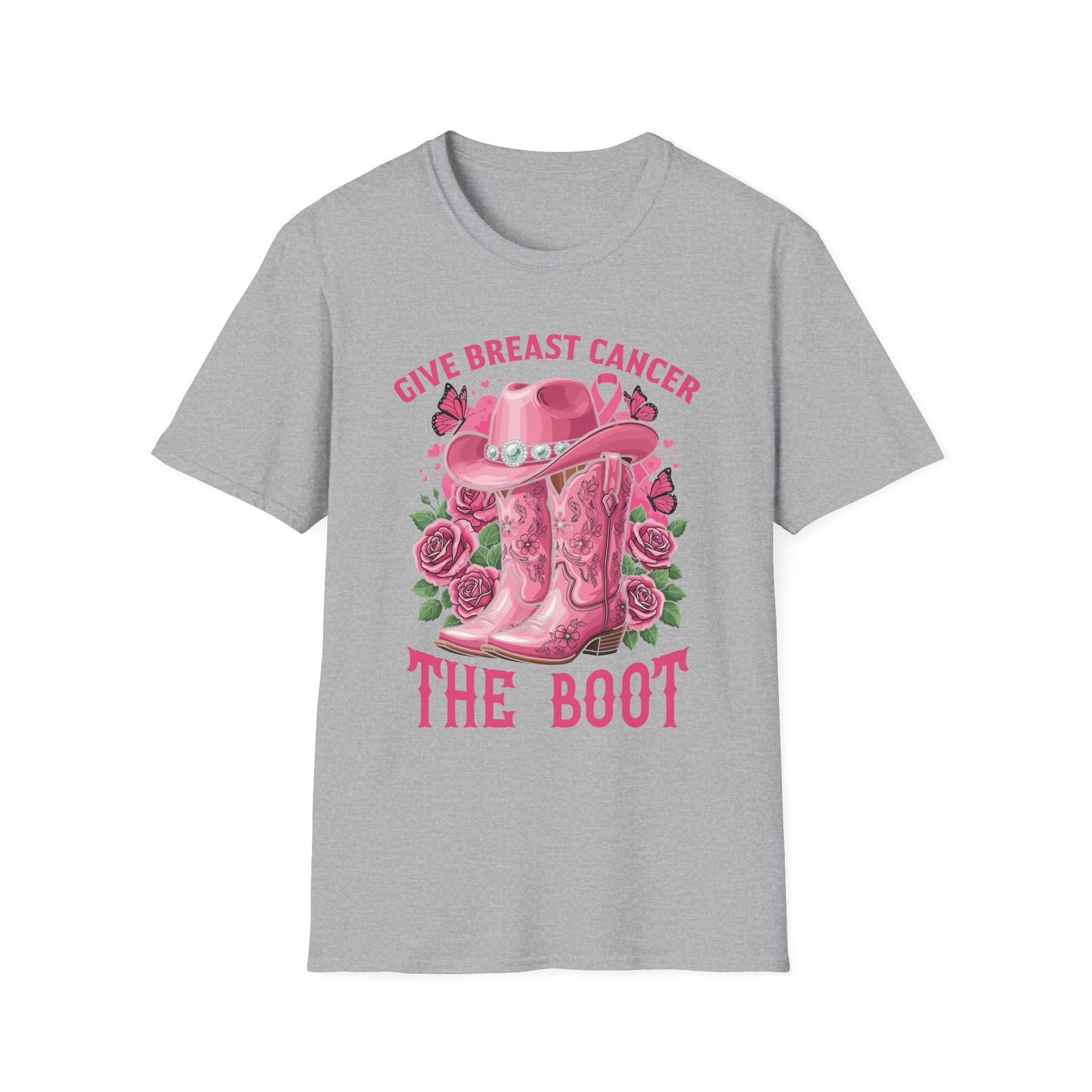 Show your strength and inspire others while keeping your style on point. This "Give Breast Cancer the Boot" tee isn't just a shirt—it’s a bold message of hope, healing, and fighting back. Whether you’ve walked the journey yourself or you're standing in solidarity, this tee speaks volumes without saying a word.